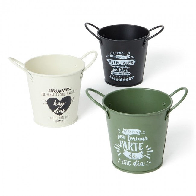 Una cubitera en tono mate con dos asas a los lados para una vez llena transportarla bien, en el exterior se leen unas frases de agradecimiento.