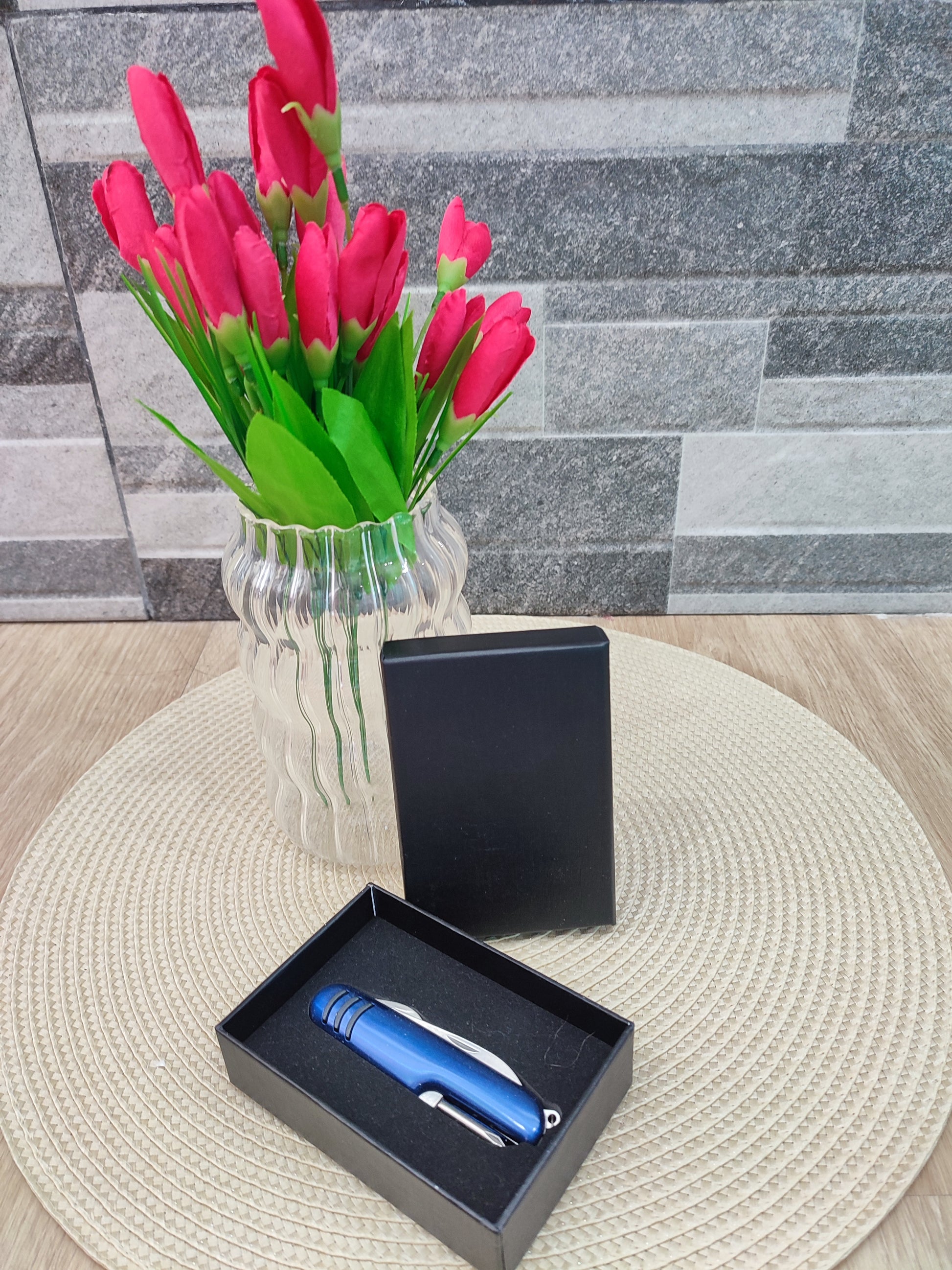 Esta elegante caja contiene una navaja multiusos, perfecta para llevar en cualquier aventura o utilizar en el día a día. Con varias funciones en un diseño compacto, es un regalo práctico y versátil, ideal para quienes valoran la funcionalidad y el estilo en un solo objeto.