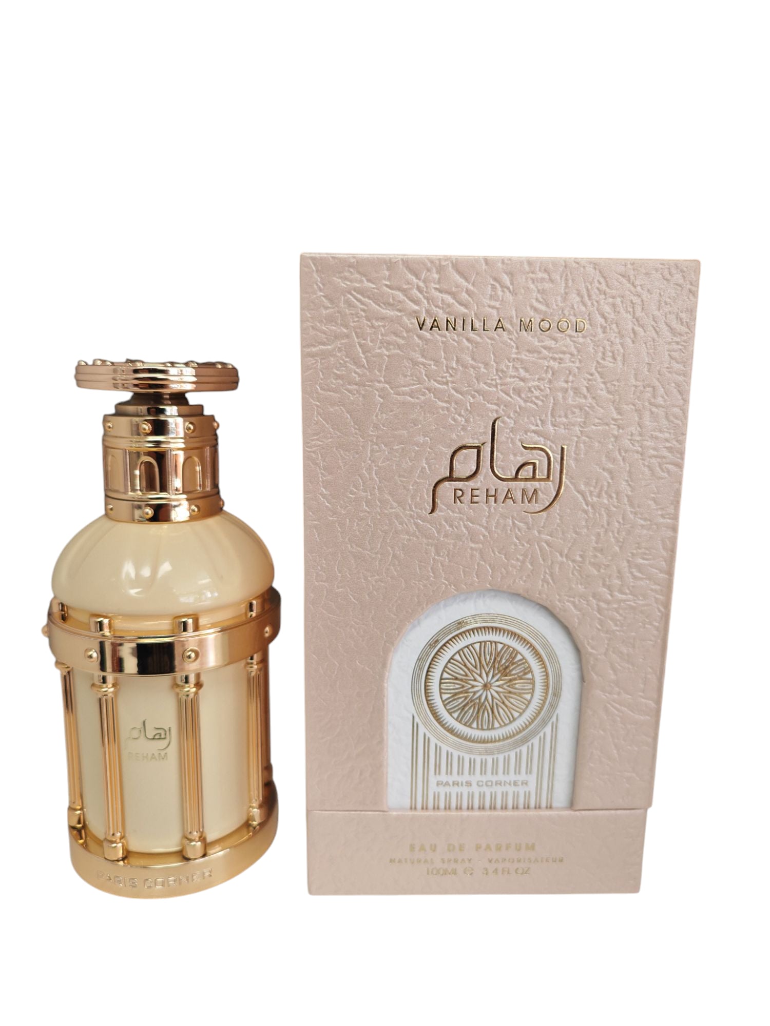 Reham Vanilla Mood de PARIS CORNER es una fragancia de la familia olfativa Oriental Vainilla para Hombres y Mujeres. Esta fragrancia es nueva. Reham Vanilla Mood se lanzó en 2025. Las Notas de Salida son almizcle ambreta, jengibre y notas ozónicas; las Notas de Corazón son mirra, benjuí y raíz de lirio; las Notas de Fondo son vainilla, cuero y almizcle.