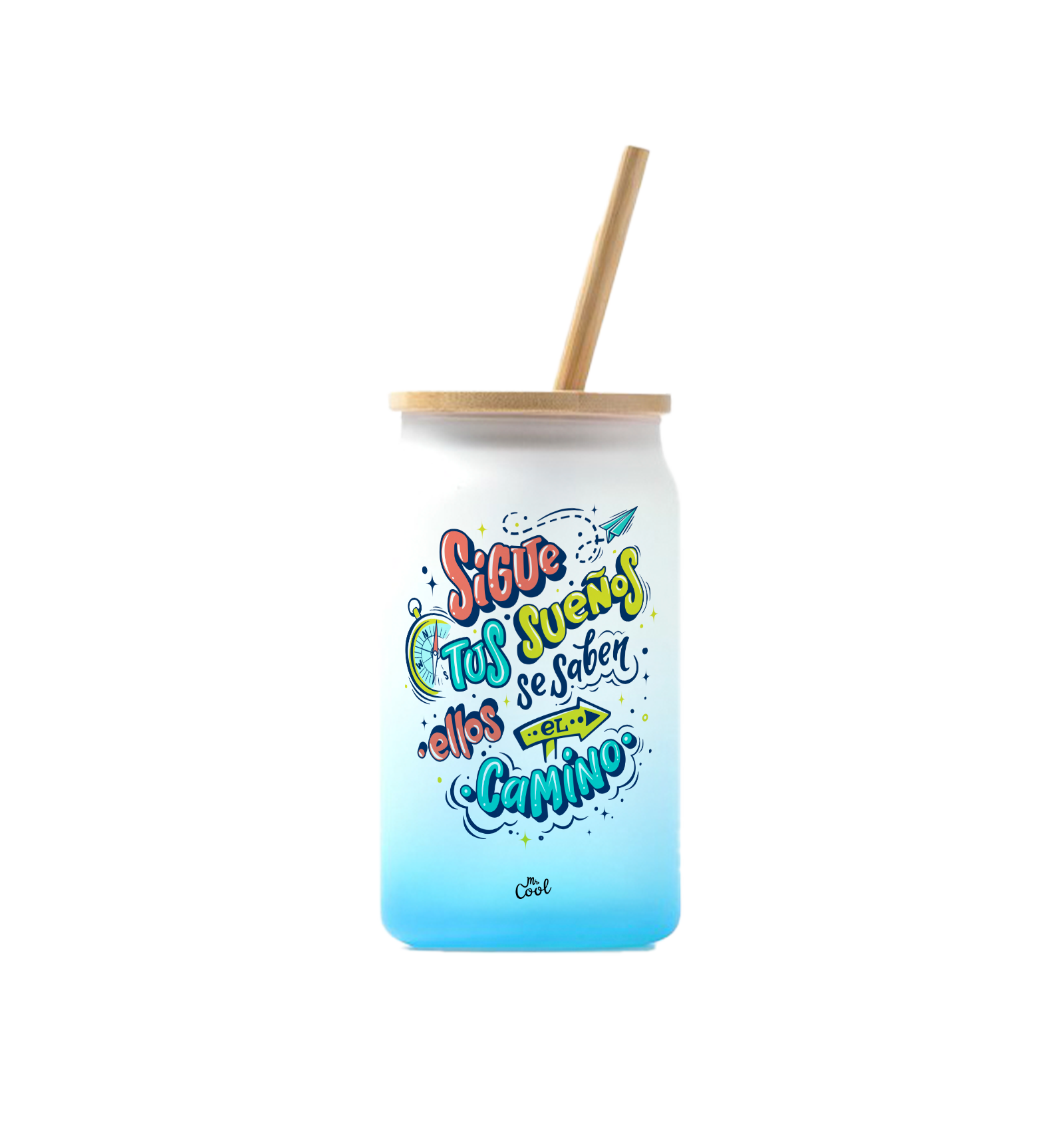 Vaso de cristal degradado de 350ml con frases marca Mr. Cool.