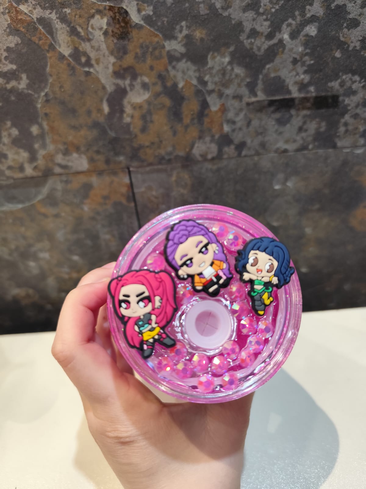 Vaso de purpurina flotante de K-Pop Demon Hunters.