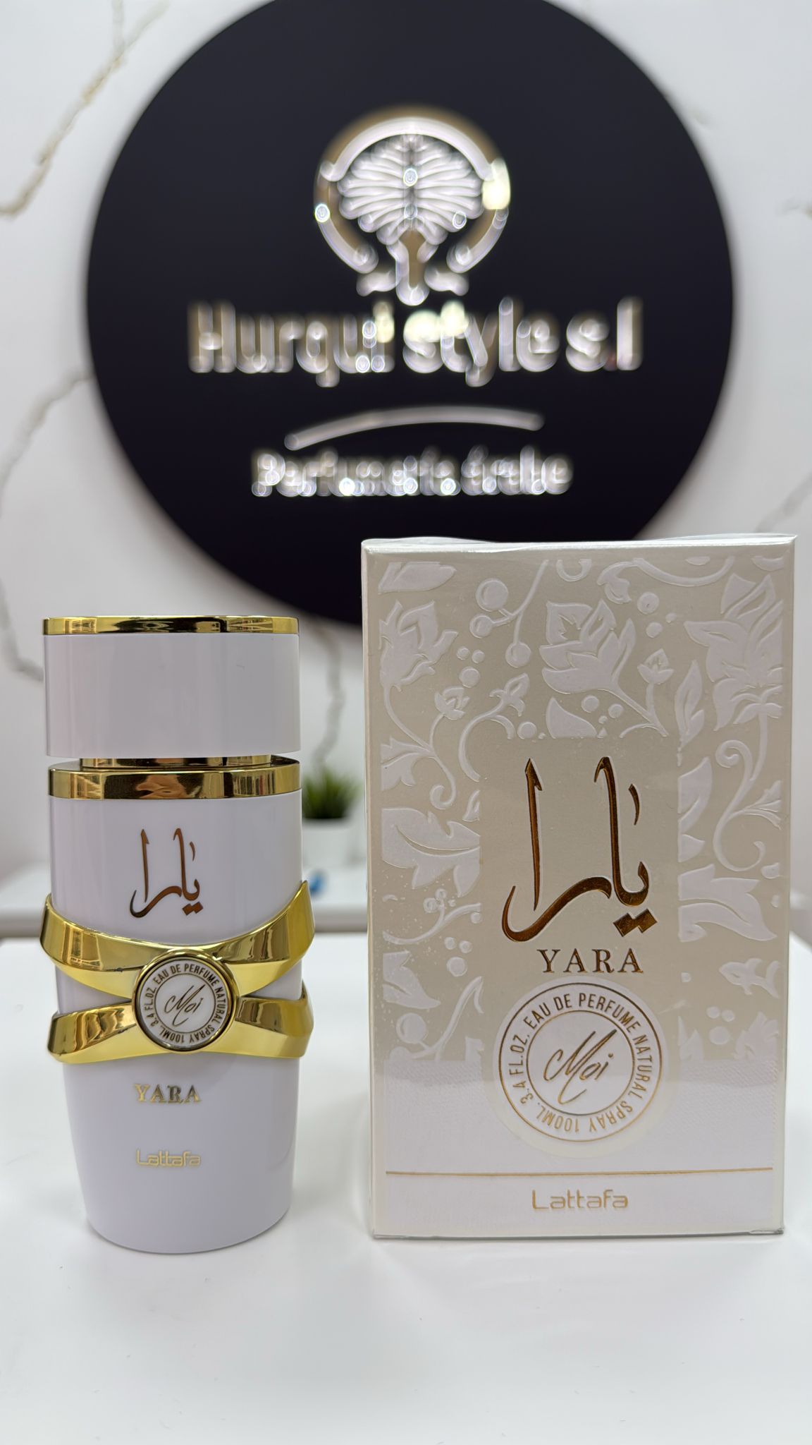 Yara Moi de Lattafa Perfumes es una fragancia de la familia olfativa para Mujeres. Yara Moi se lanzó en 2022. Las Notas de Salida son jazmín y durazno (melocotón); las Notas de Corazón son caramelo y ámbar; las Notas de Fondo son pachulí y sándalo.